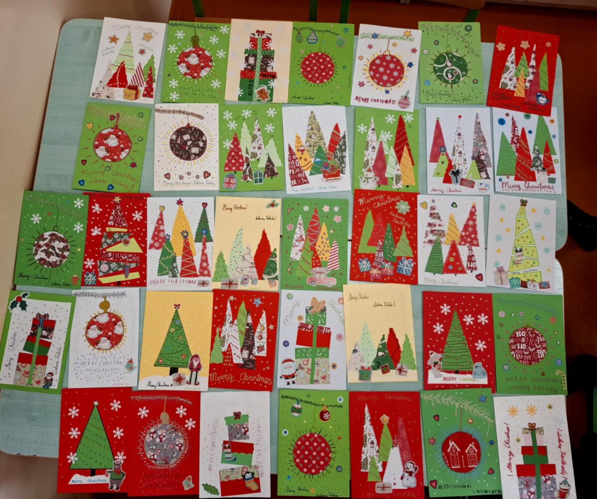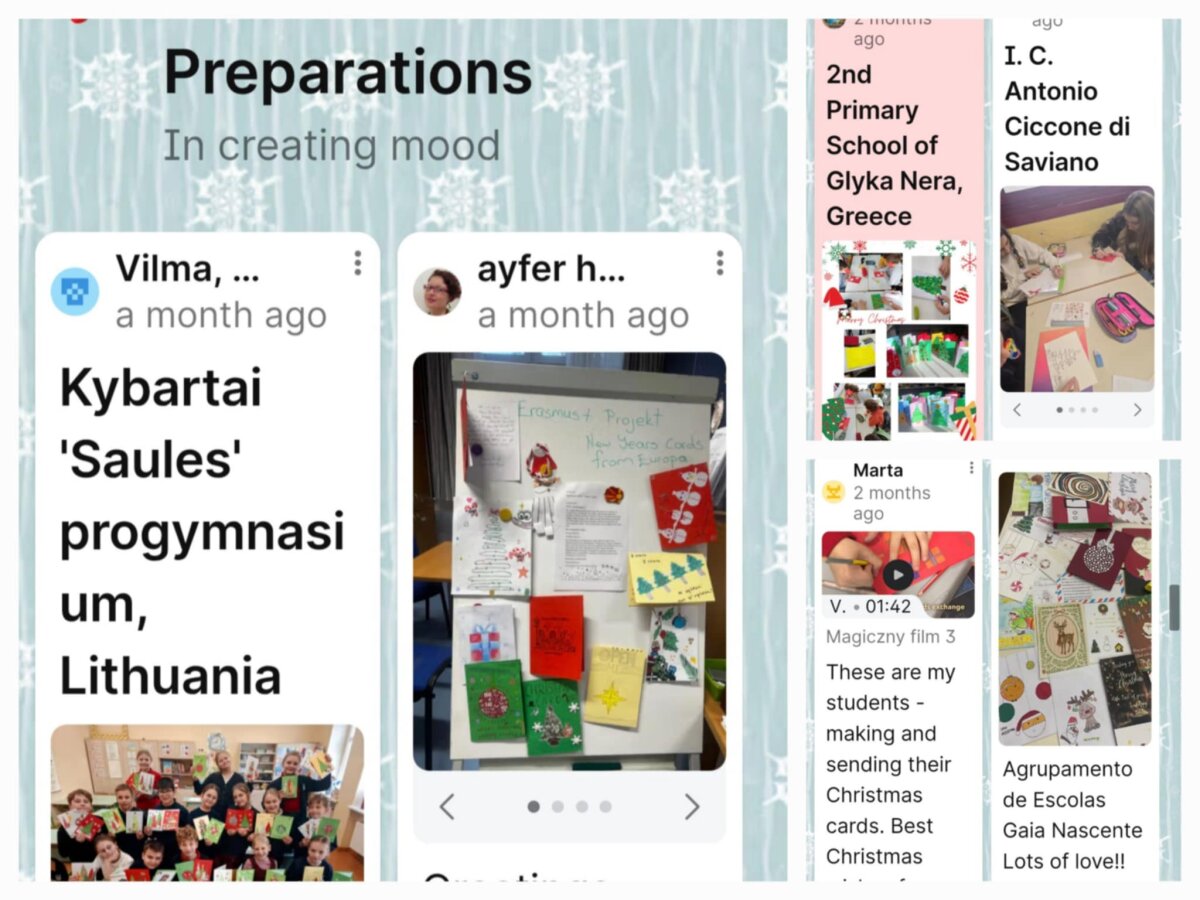 Gruodžio mėnesį ketvirtokai gamino kalėdinius atvirukus ir kūrė šventinius sveikinimus. Kiekviena projekte dalyvaujanti šalis išsiuntė po 38 atvirukus partneriams į kitas 22 šalis, taip skleisdama šventinę nuotaiką ir užmegzdama naujas pažintis.