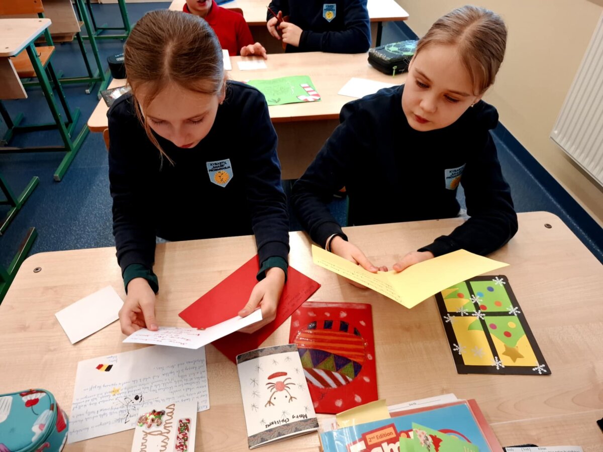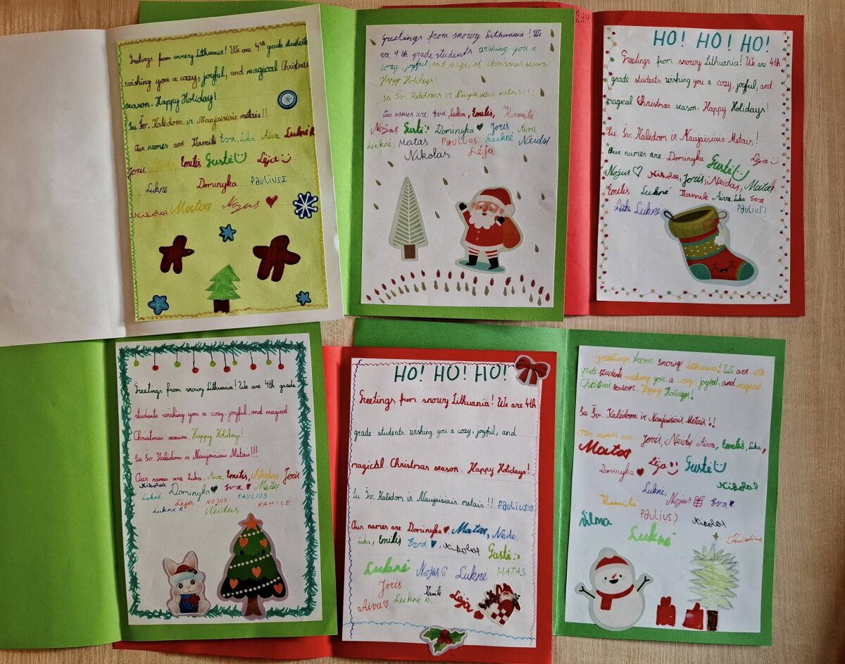 Sausio mėnesį mokiniai su nekantrumu laukė atkeliaujančių sveikinimų. Per anglų kalbos pamokas, pasiskirstę grupėmis, jie skaitė sveikinimus, laiškus, vertė juos į lietuvių kalbą ir dalijosi įspūdžiais. Mokiniai stebėjo ir žemėlapyje žymėjo šalis, iš kurių atkeliavo atvirukai. Tai tapo ne tik kalbinio, bet ir pažintinio mokymosi patirtimi.