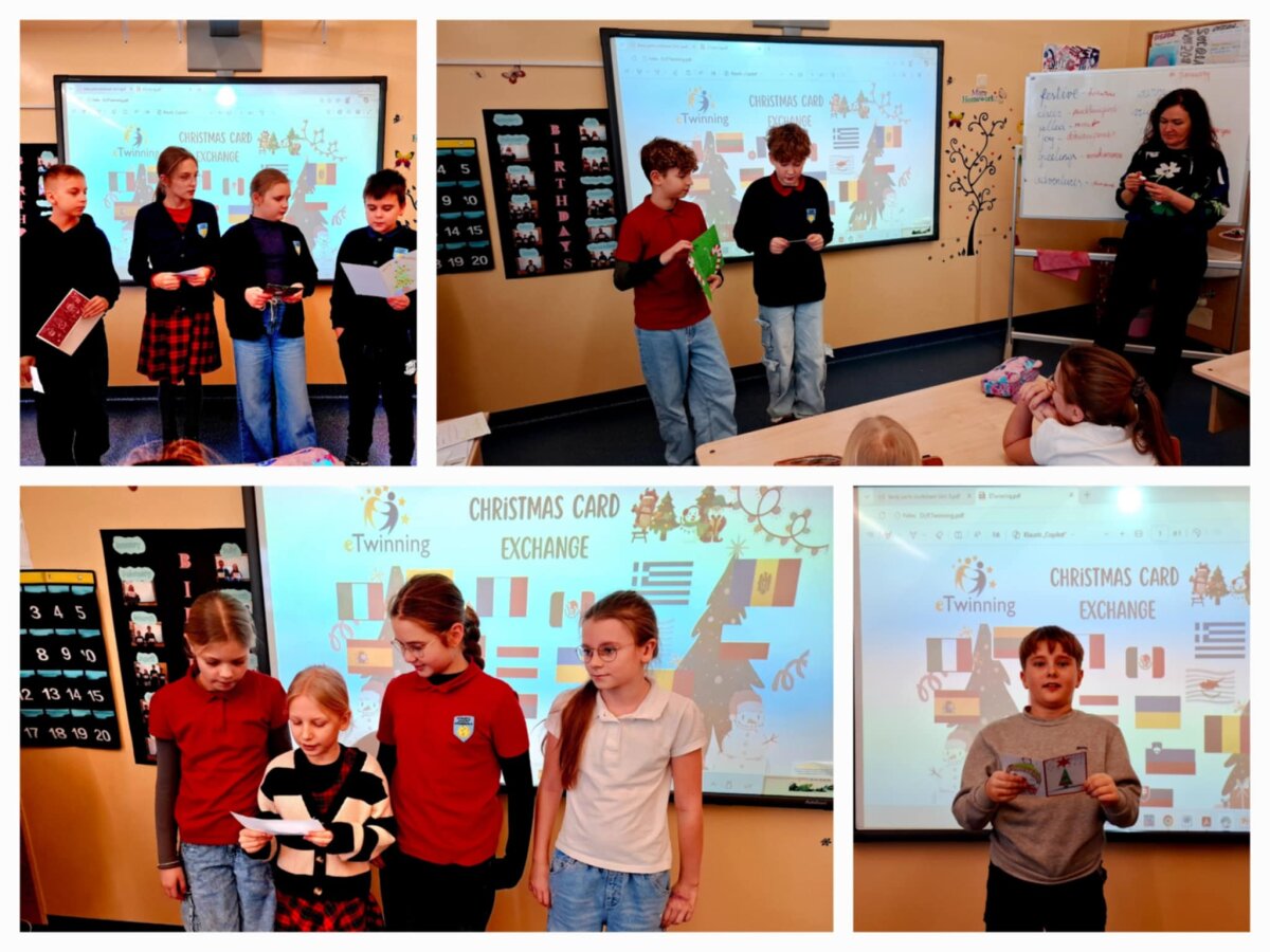 4c klasės mokiniai (mokytojos Kristina Antanavičienė ir Vilma Žvirblienė) dalyvavo tarptautiniame eTwinning projekte „Christmas Card Exchange“, kuris vyko gruodžio–sausio mėnesiais ir subūrė dalyvius iš įvairių šalių. Šis projektas suteikė mokiniams galimybę patirti bendravimo ir bendradarbiavimo džiaugsmą, ugdyti kūrybiškumą bei tobulinti anglų kalbos įgūdžius.