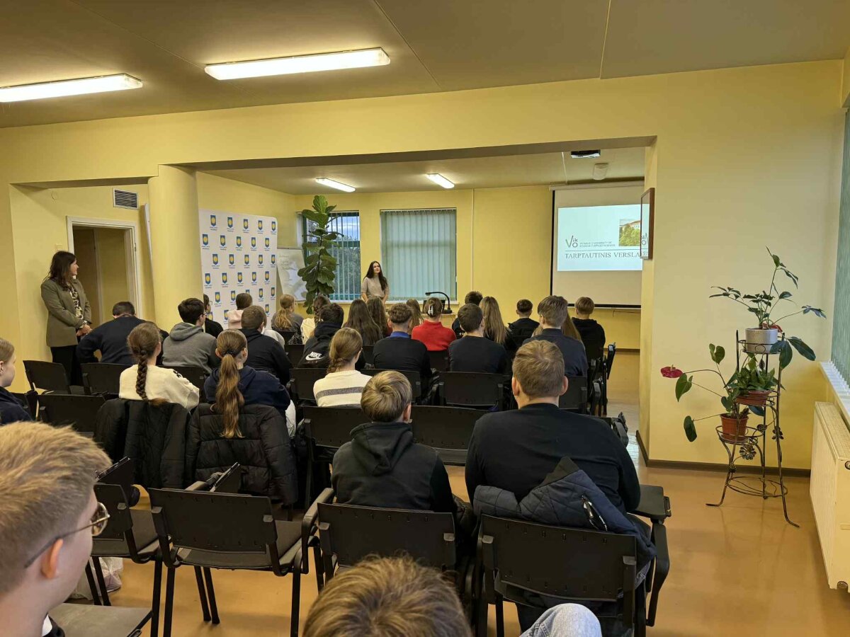 • Savo pasirinkimo motyvai: Ugnė atskleidė, kodėl pasirinko tarptautinį verslą kaip savo specialybę ir kokie yra jos įdomumo šaltiniai bei perspektyvos. Ji papasakojo apie asmeninę patirtį, kuri įkvėpė siekti šios krypties ir ką ji tikisi ateityje pasiekti. Antrą susitikimą dalį mokiniai dirbo grupėse. Septintokai turėjo galimybę dirbti komandoje ir kurti savo įmonės ar verslo plano idėją. Tokia užduotis skatino kūrybiškumą, bendradarbiavimą bei praktinį projektinį mąstymą. Ačiū Ugnei už įkvepiantį ir įdomų pristatymą, už jos laiką, šiltą bendravimą su mokiniais ir informatyvias įžvalgas apie studijų galimybes bei ateities perspektyvas. Tokie susitikimai ne tik plečia žinias, bet ir įkvepia mokinius rasti savo kelią ir tikslus.