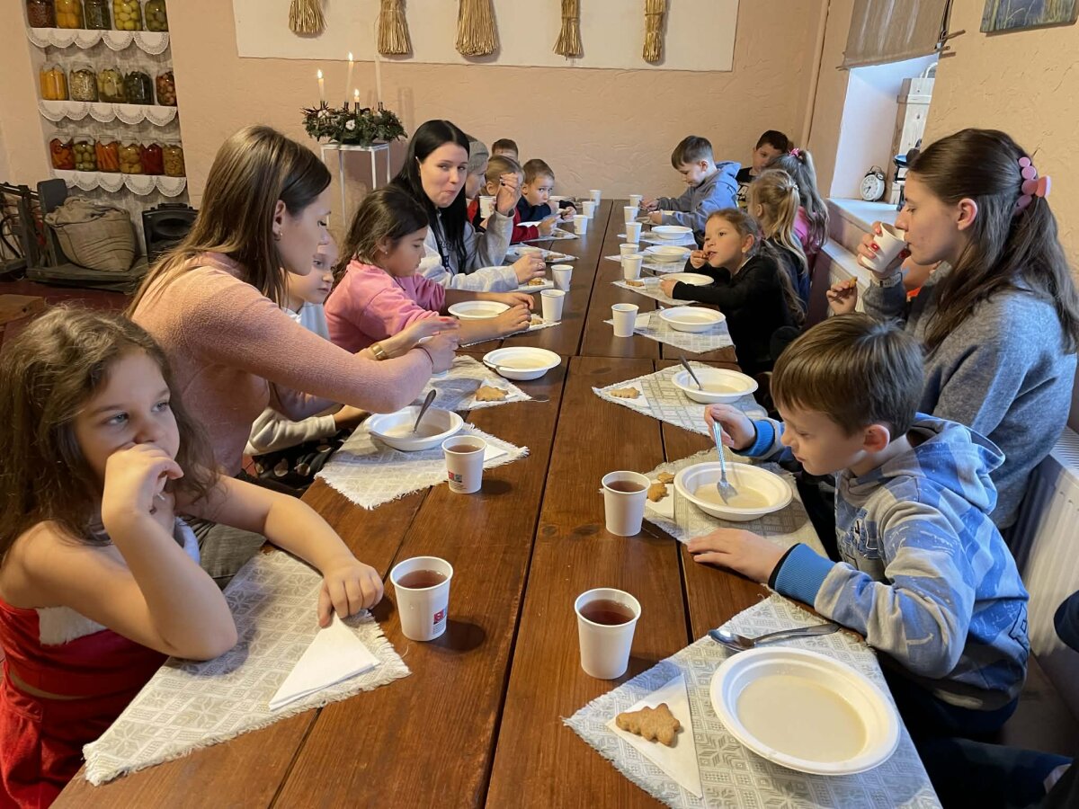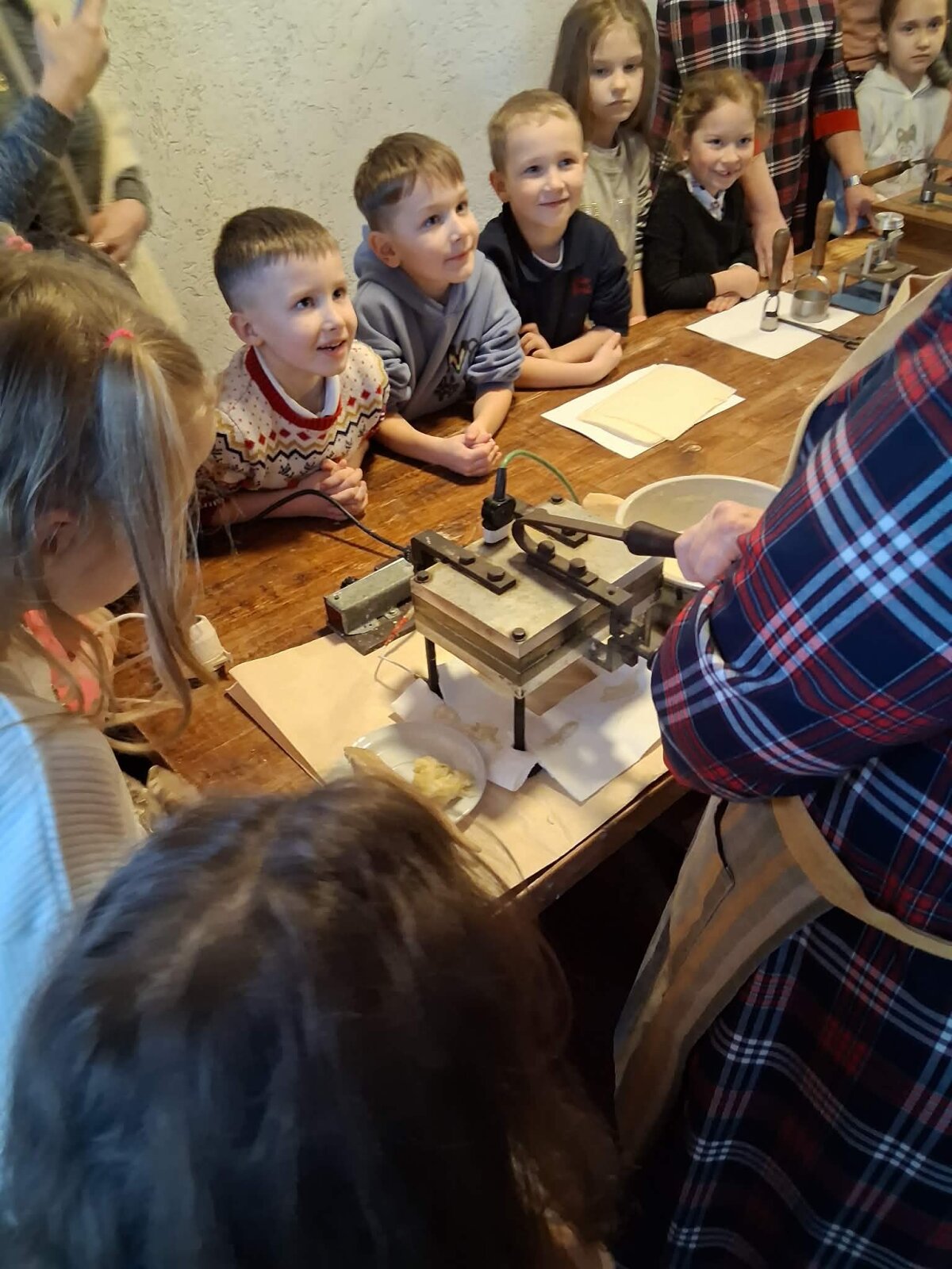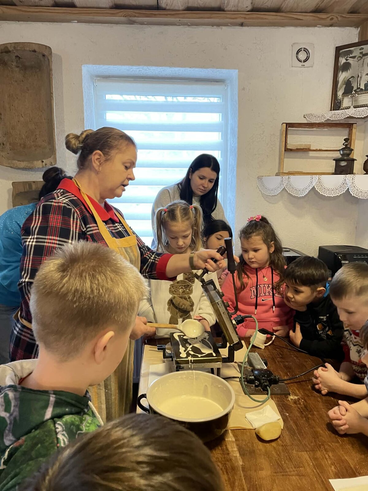 O įdomiausia buvo kepti kalėdaičius. Visus pavaišino pieniška kleckų sriuba ,,Zacirka", karšta arbata ir imbieriniais sausainiais. Kiekvienas išsinešė į namus gerą nuotaiką ir po kalėdaitį.