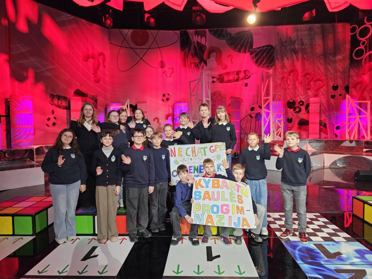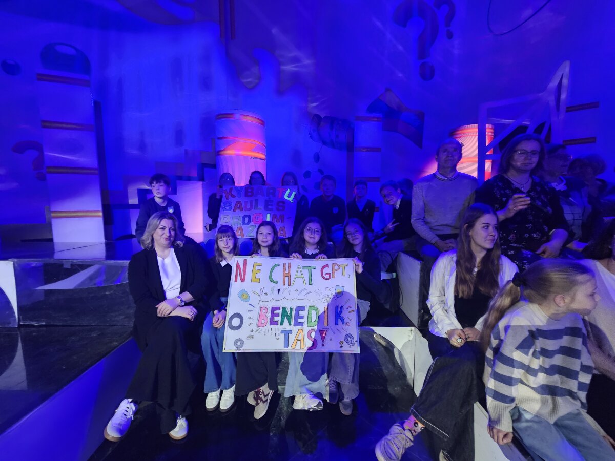 Į LRT studiją Benediktas vyko ne vienas, o su didele palaikymo komanda. 5a klasės draugai ne tik kūrė plakatus, bet ir aktyviai prisidėjo palaikydami savo klasės draugą.