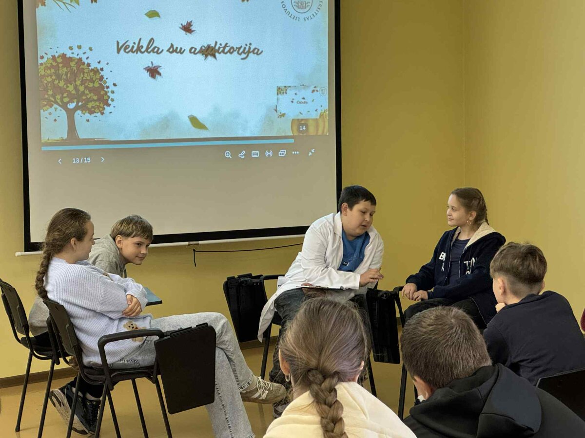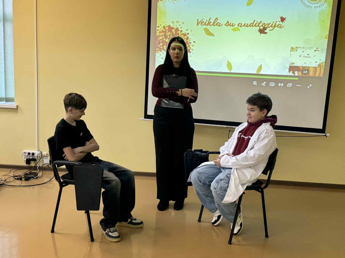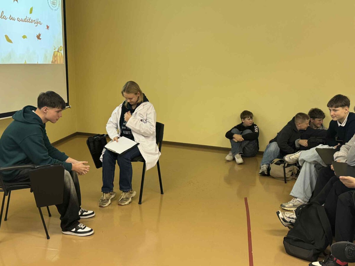 Mokiniai taip pat galėjo išbandyti psichologo vietą per praktinę užduotį. Ji pabrėžė, kad psichologijos darbas reikalauja empatijos, kantrybės ir nuolatinio mokymosi.